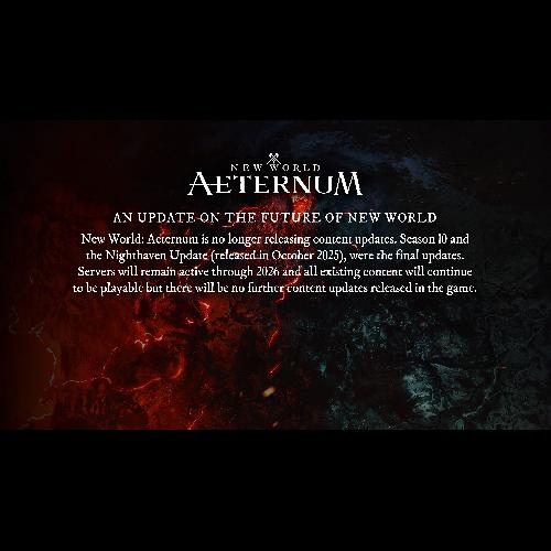 New World: Aeternum is no longer releasing content updates. Season 10 and the Nighthaven Update (released in October 2025), were the final updates. Servers will remain active through 2026 and all existing content will continue to be playable but there will be no further content updates released in the game.